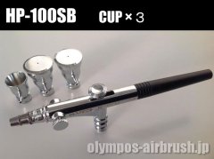 IWATAのHP-SBP等には差込式の塗料カップは1個しか付いてきませんが、このHP-100SB CUP×2には塗料カップが計2個付いてくるところがミソです。HP-100SB CUP×2に付いてくる蓋付の中カップは他で見たことがないのでオリンポスならでは特徴かもしれません。