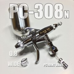 PC-300シリーズの塗料カップ取り付けネジは特殊専用ネジではなく、一般的な1/4ネジなので他社スプレーガンのサイド塗料カップを取り付ける事が出来たりします。